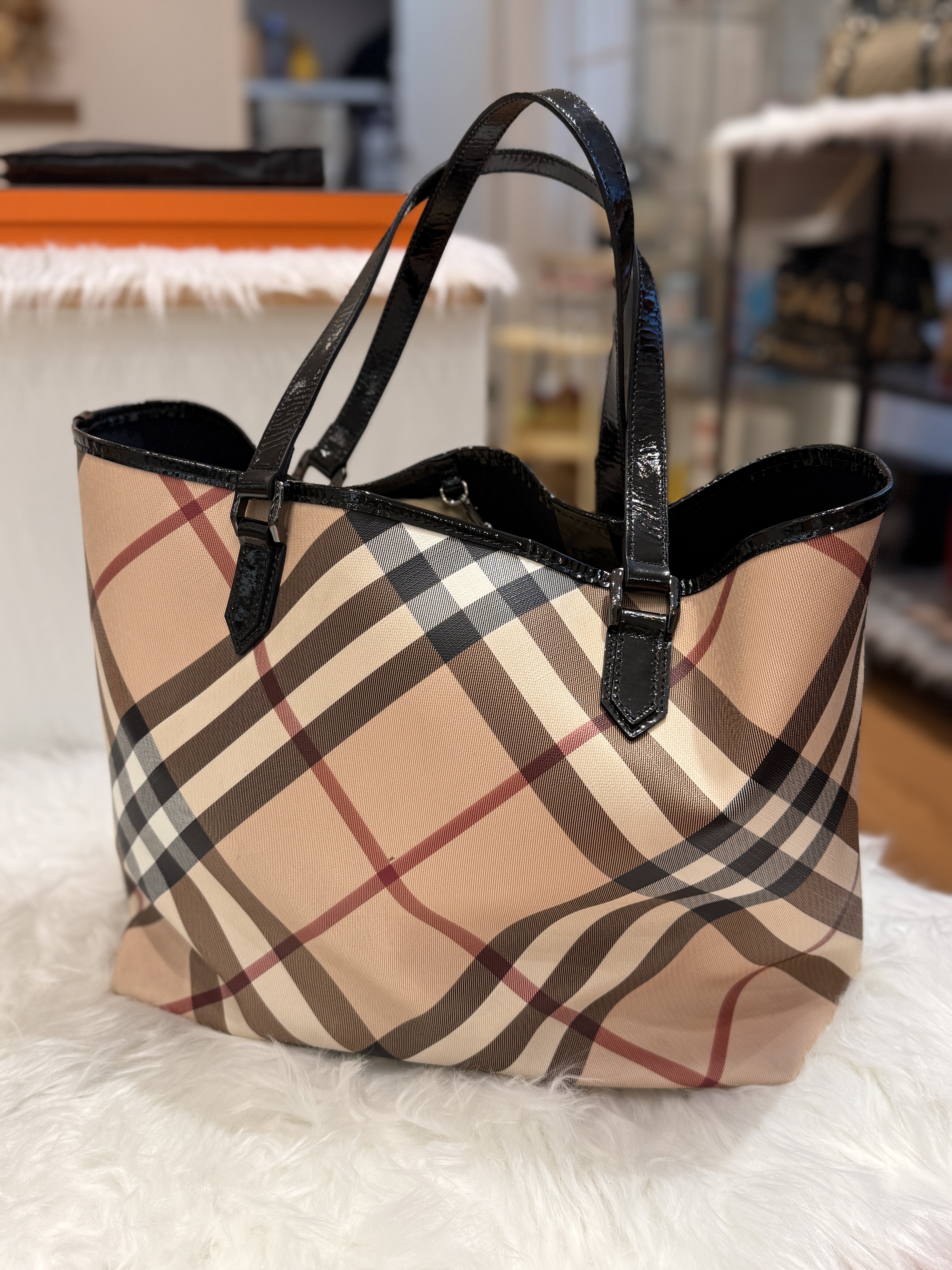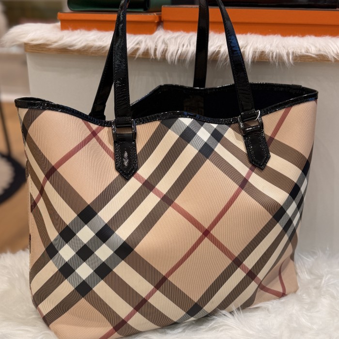 Material: Burberry Check Canvas with Patent Leather Trims