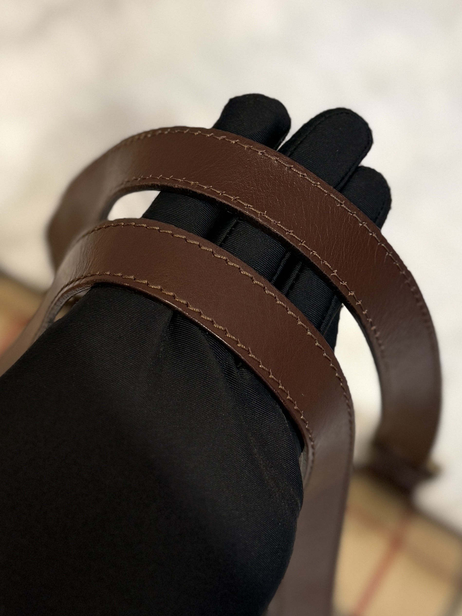 Statement front buckle with leather flap