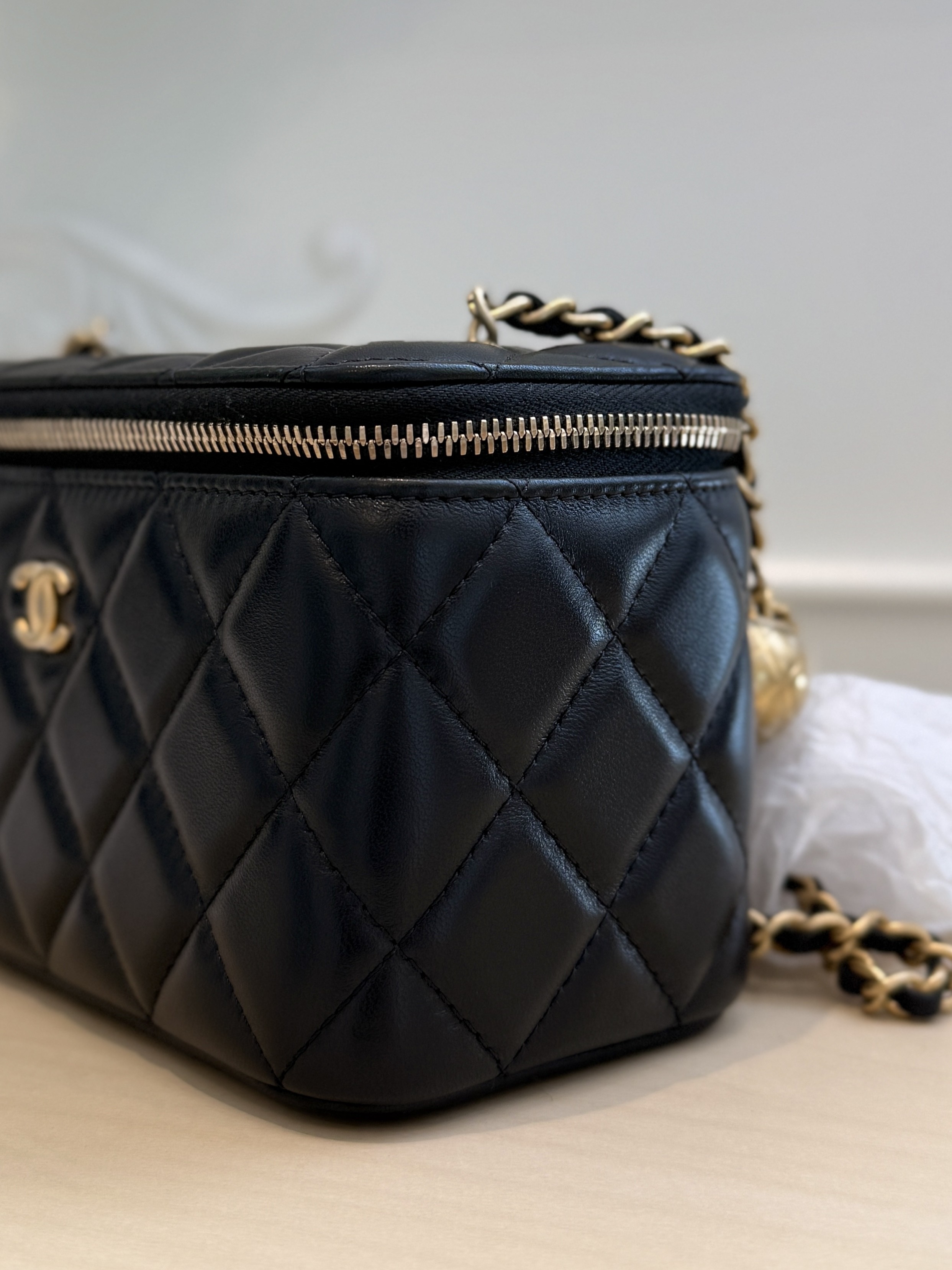 Item: Chanel Lambskin Rectangular Vanity Case with Pearl Crush