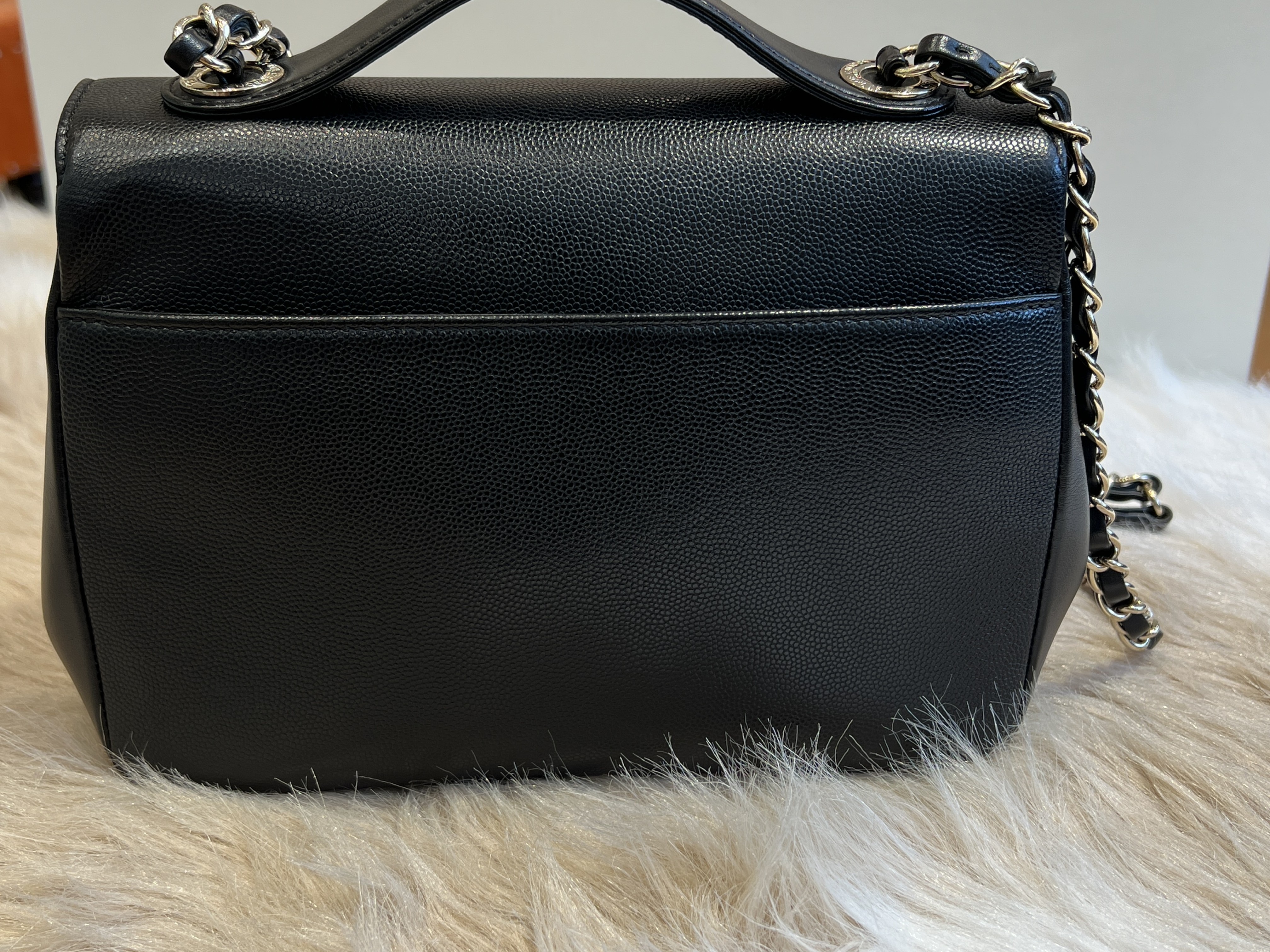 Elegant top-handle design with classic Chanel silhouette