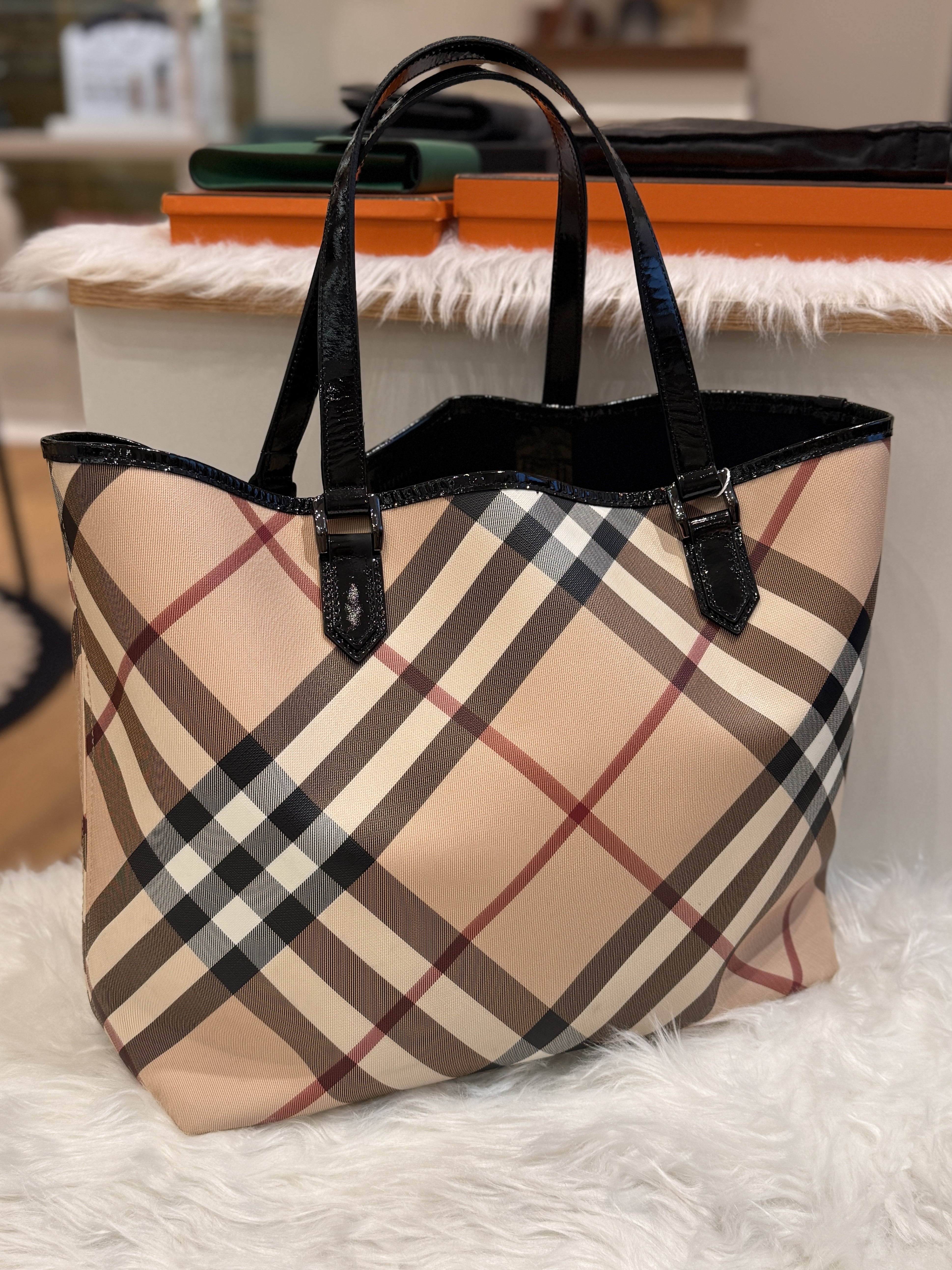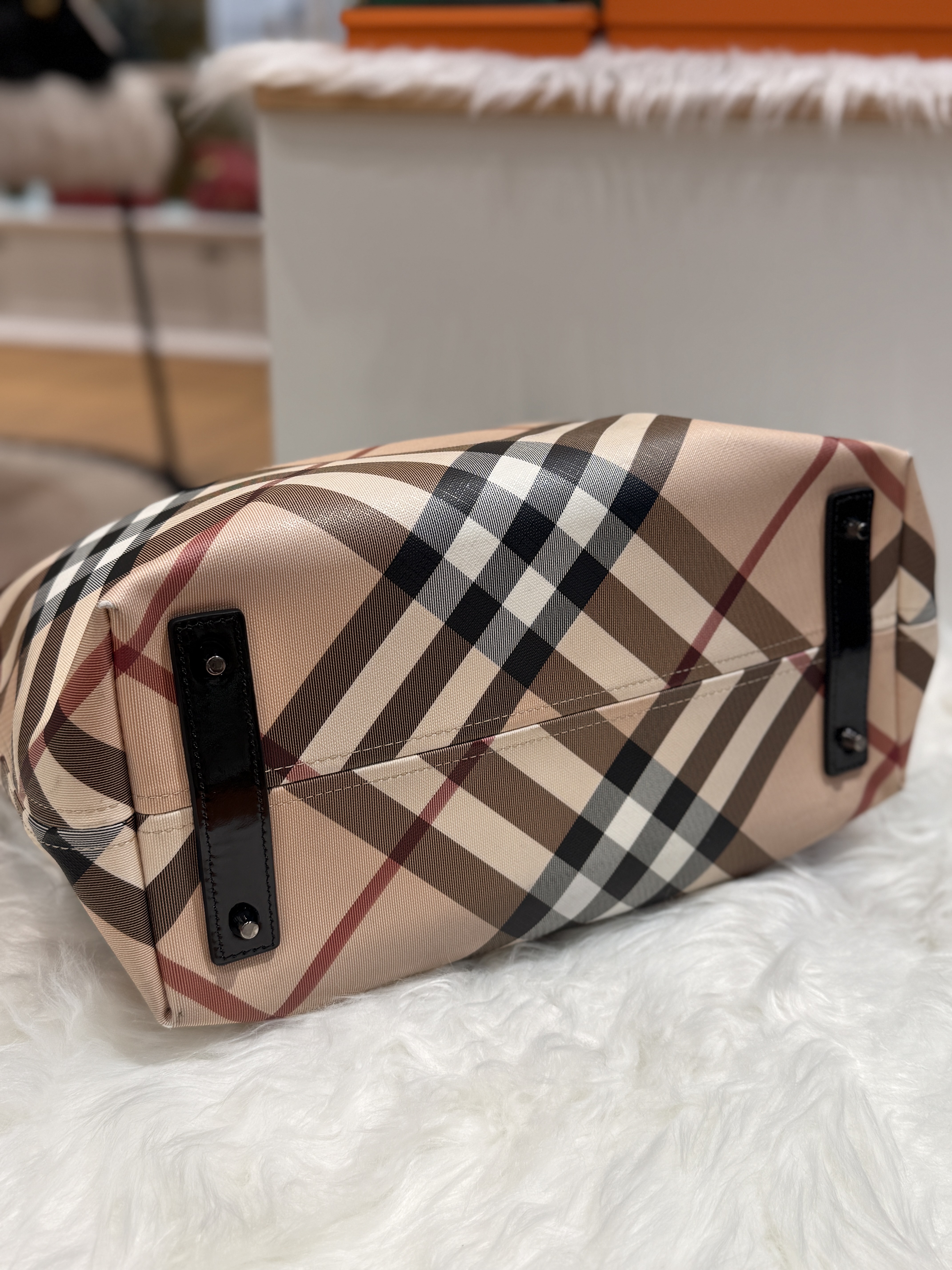 Material: Burberry Check Canvas with Patent Leather Trims