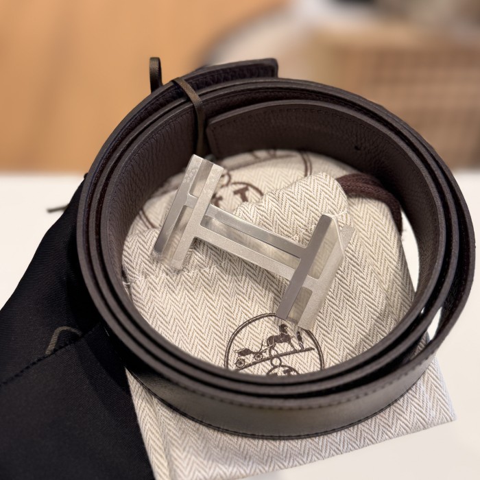 Iconic Hermès H buckle with brushed silver finish